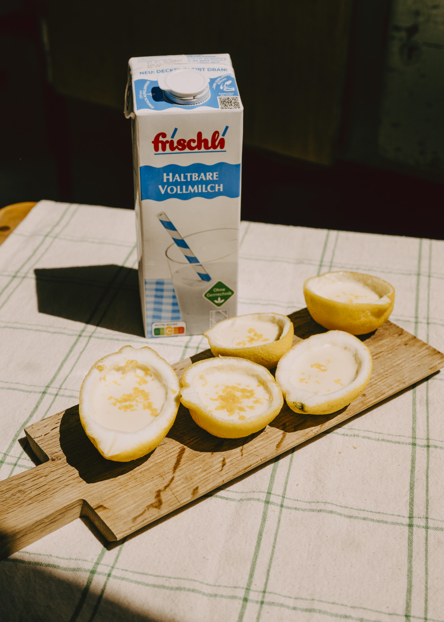 4. In kleine Gläser oder ausgehöhlte Zitronenhälften füllen und über Nacht im Kühlschrank fest werden lassen.