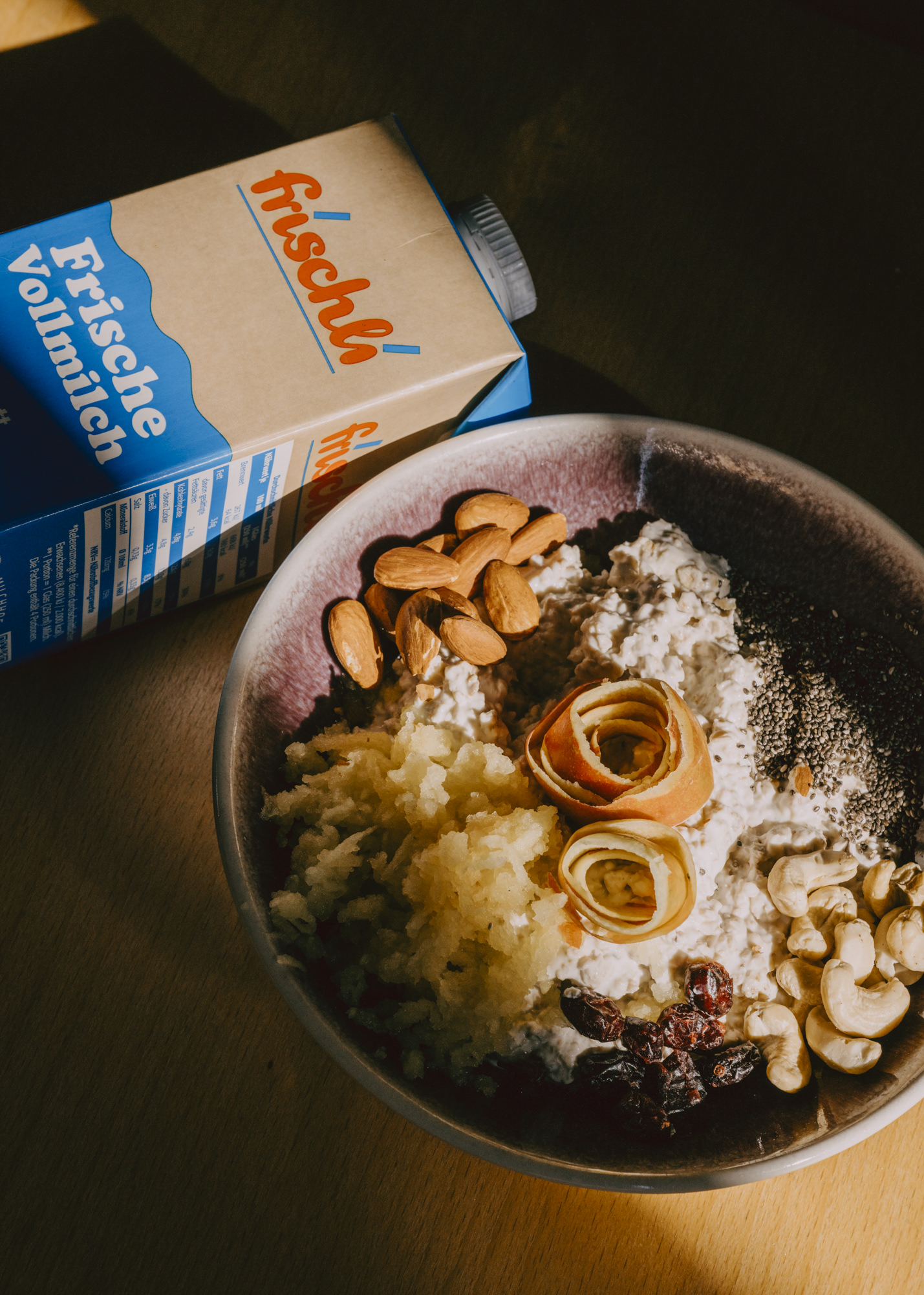 Frisch, nahrhaft und unkompliziert: Dieses Bircher-Müsli liefert alles, was ihr für einen guten Start in den Tag braucht. Die Kombination aus zarten Haferflocken, frischli-Milch, geraspeltem Apfel und knackigen Nüssen ist nicht nur gesund, sondern auch richtig lecker.